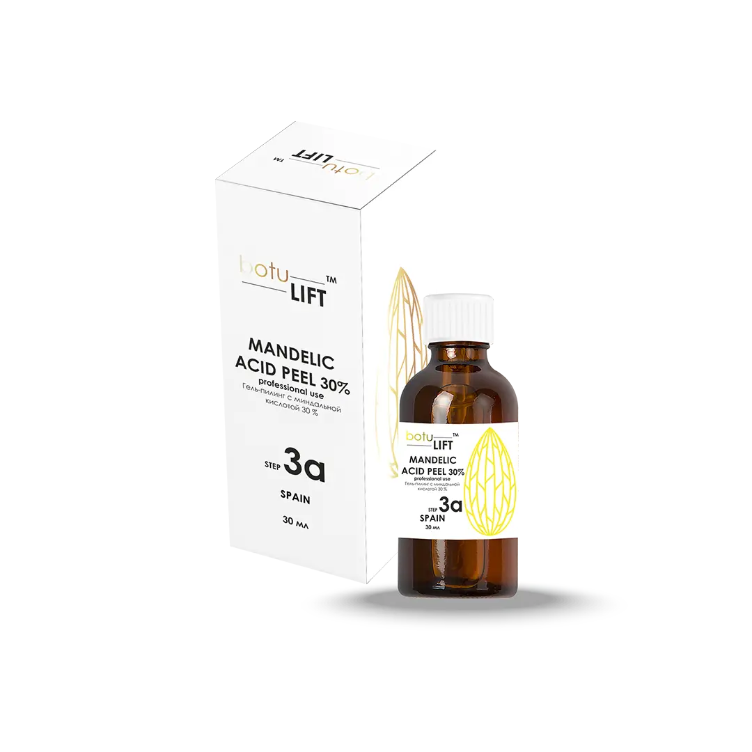 Описание: смесь АНА и ВНА кислот (миндальная кислота 30%, молочная кислота 12%, гликолевая кислота 8%) обеспечивают эксфолиацию ороговевших чешуек эпидермиса. Снижает степень выраженности тона и рельефа кожи • Ниацинамид (витамин В3) выравнивает тон кожи, восстанавливает структурную и функциональную целостность рогового слоя, принципиально важный фактор для сухой и чувствительной кожи