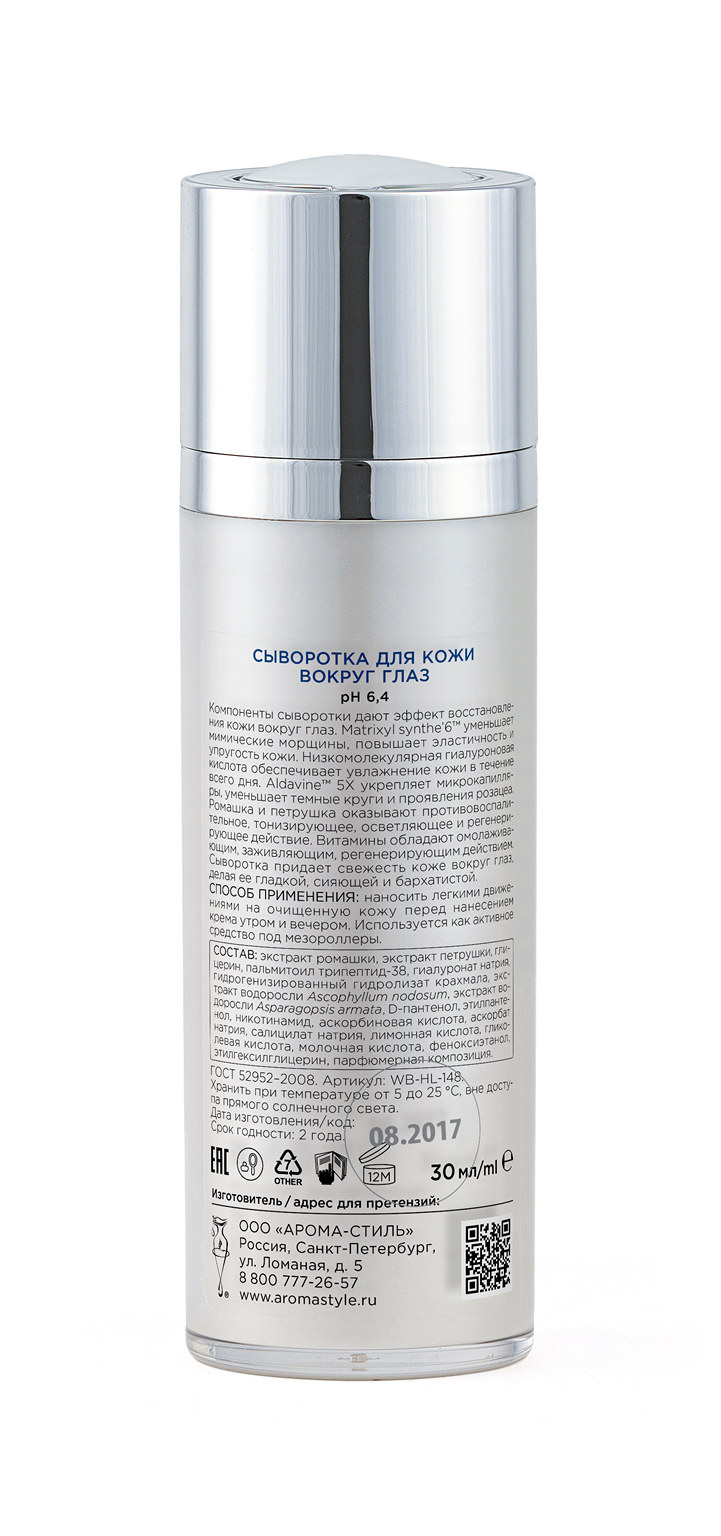 Описание: дает эффект восстановления кожи вокруг глаз. Экстракты ромашки и петрушки оказывают противовоспалительное, тонизирующее, осветляющее и регенерирующее действие. Сыворотка придает свежесть коже, делая ее гладкой, сияющей и бархатистой.