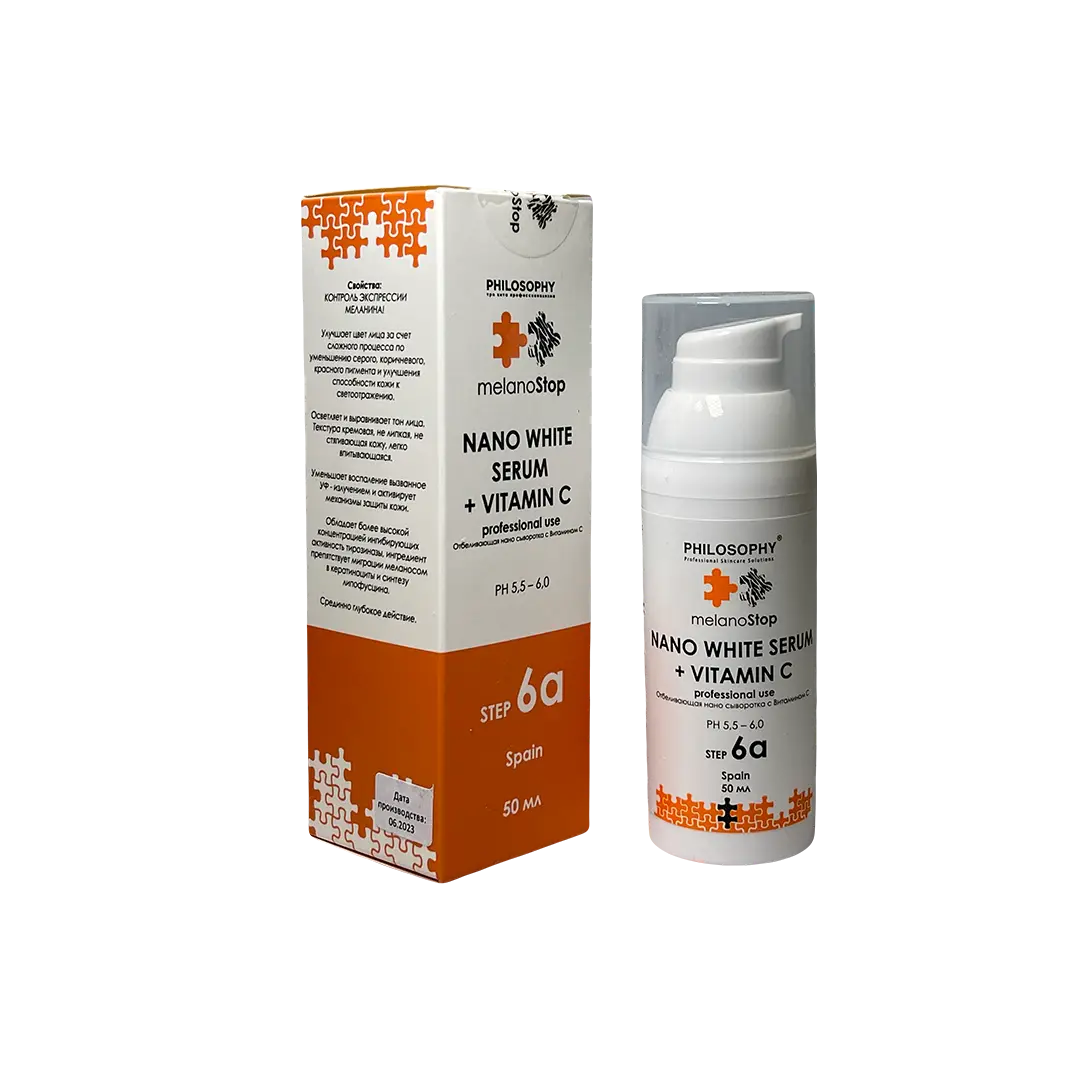 1 мл сыворотки нанести на кожу лица, шеи, декольте похлопывающими движениями до полного впитывания. В завершении процедуры нанести крем для лица STEP 7а. Отбеливающий нано крем с Витамином С и СПФ 30 или STEP 7b Осветляющий и увлажняющий нано крем с Витамином С и гиалуроновой кислотой и крем под глаза от темных кругов STEP 8 Осветляющий нано крем под глаза от темных кругов.