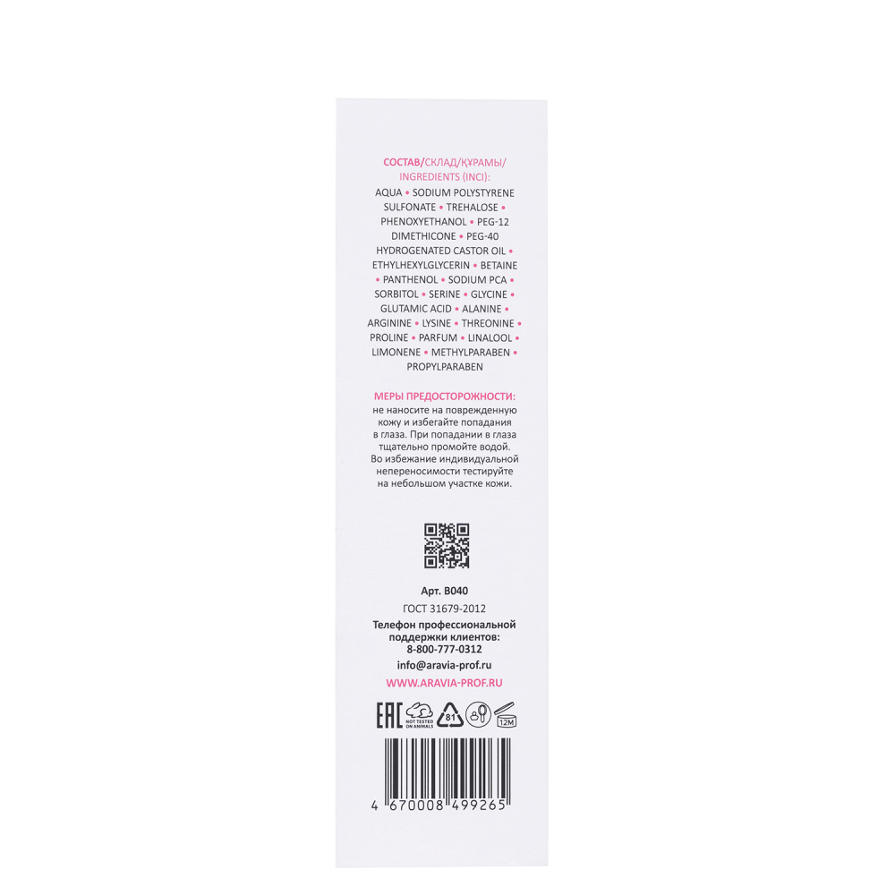 Состав: вода, косметическая основа, аминокислоты, Д-пантенол, трехалоза