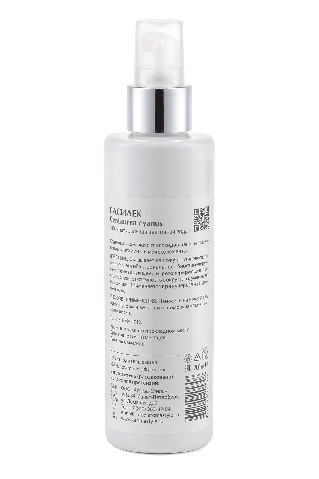 100% натуральная цветочная вода Василька (Centaurea cyanus) полученный путём паровой дистилляции из цветков василька. Натуральные биофлаваноиды в составе ингредиента оказывают выраженное антибактериальное воздействие.