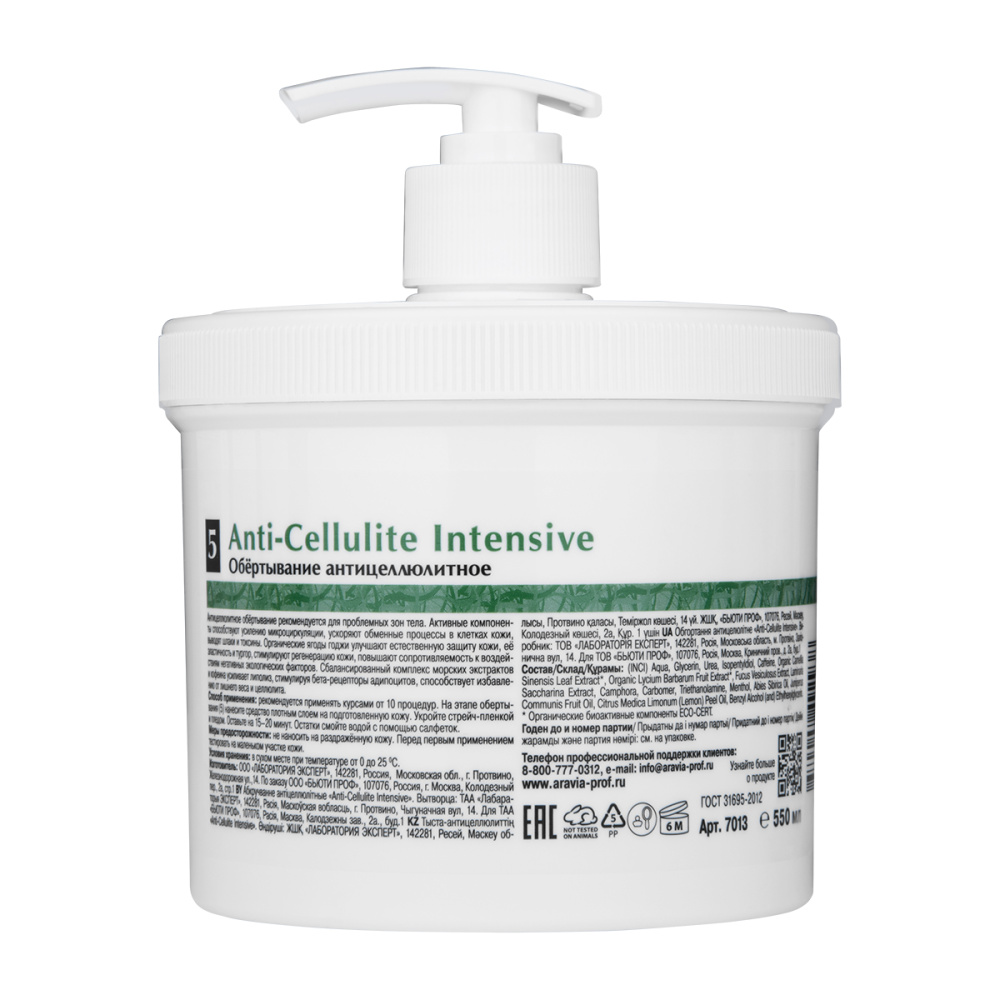 Антицеллюлитное обёртывание рекомендуется для проблемных зон тела. Активные компоненты способствуют усилению микроциркуляции, ускоряют обменные процессы в клетках кожи, выводят шлаки и токсины. Органические ягоды годжи улучшают естественную защиту кожи, её эластичность и тургор, стимулируют регенерацию кожи и повышают ее сопротивляемость к воздействиям негативных экологических факторов. Сбалансированный комплекс морских экстрактов и кофеина усиливает липолиз, стимулируя бета- рецепторы адипоцитов, способствует избавлению от лишнего веса и целлюлита.