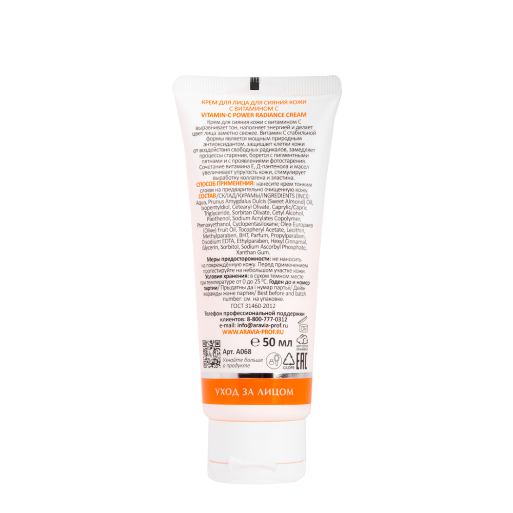 —Крем для лица для сияния кожи с витамином С Aravia Professional Vitamin-C Radiance Cream, 50 мл