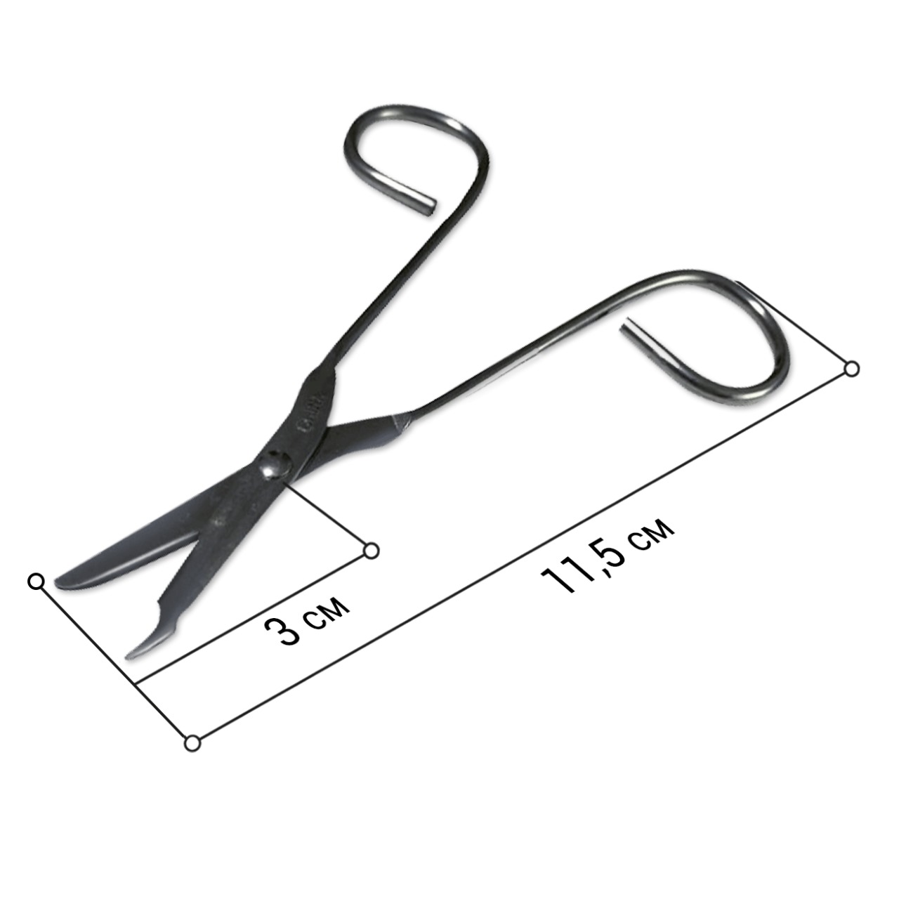 Ножницы имеют серповидную выемку на одном кончике, другой кончик тупоконечный.