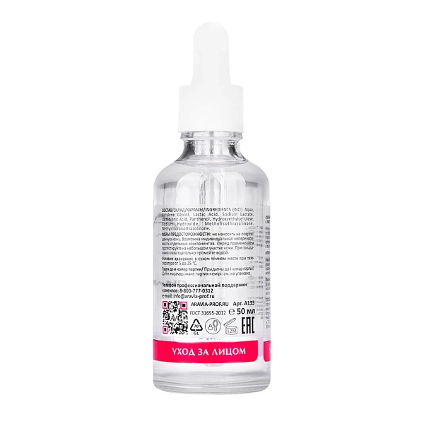 Состав: Aqua, Butylene Glycol, Lactic Acid, Sodium Lactate, Lactobionic Acid, Panthenol, Hydroxyethylcellulose, Sodium Hydroxide, Methylisothiazolinone, Methylchloroisothiazolinone.