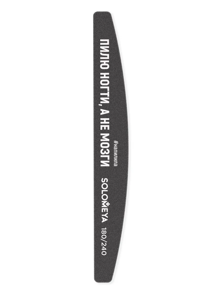 Описание: Это больше, чем просто пилка, это твой личный аксессуар! Каждая надпись как отражение индивидуальности, настроения и собственного #moodoftheday. Но кроме креативного дизайна, это еще и надежный помощник в маникюре и педикюре! Пилка предназначена для обработки натуральных ногтей и шлифовки искусственных поверхностей. Две рабочие поверхности с разной жесткостью: верхняя – 180 грит, нижняя – 240 грит. Куполообразный изгиб пилки очень удобен – он позволяет произвести аккуратный опил зоны свободного края ногтевой пластины, не меняя положение пилки в руке. Благодаря высокому качеству и прочности пилка прослужит долго, а надпись будет всегда актуальна!Легко моется и дезинфицируется.