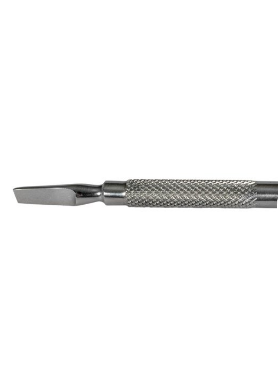 Описание: Двусторонний шабер из нержавеющей стали ручной заточки. Применяется для подготовки ногтей к педикюру. Благодаря насечкам на ручке очень удобен в работе. Сторона с лопаткой идеально подходит для отодвигания кутикулы к основанию ногтевой пластины при подготовке ногтей к педикюру для облегчения удаления кутикулы. А другой стороной можно безопасно обрезать нижний слой кутикулы, заусенцы, очистить ногтевую пластину от прилегающих частиц огрубевшей кожи.