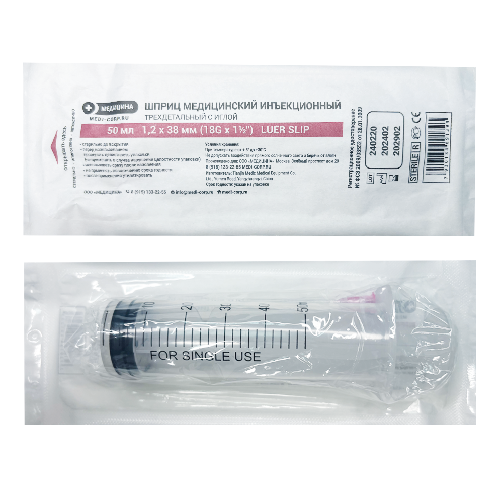 Описание: Трёхкомпонентные стерильные шприцы LUER Slip, предназначены для внутривенных вливаний и забора жидкостей для диагностических исследований.