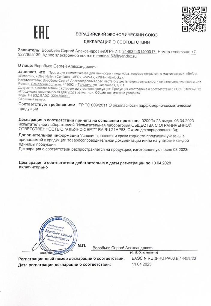 Способ применения: Нанести тонким слоем поверх дизайна. Полимеризировать в лампе.