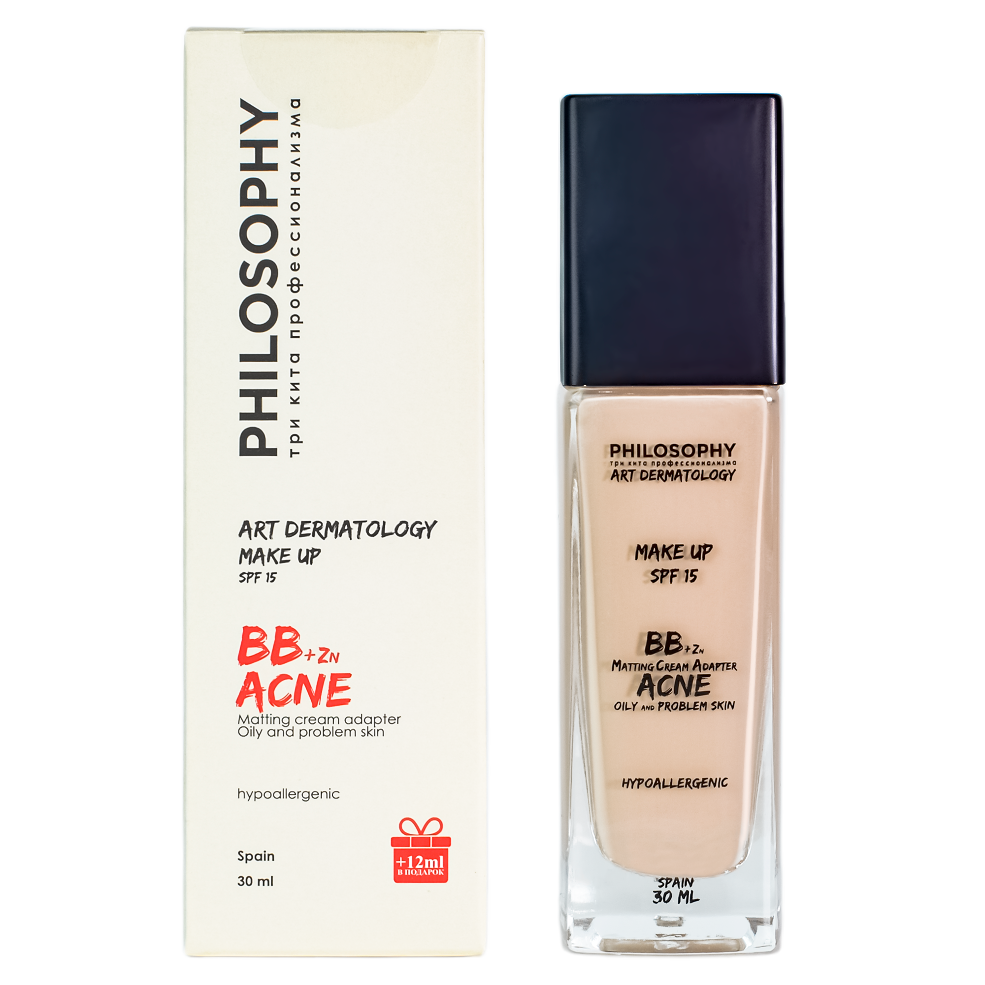 Описание: PHILOSOPHY Art Dermatology BB + Zinc Matting Cream Adapter – это первый дерматологический макияж, который “дышит”, обеспечивая 24-часовую стойкость и естественную матовость кожи. Содержит натуральные ингредиенты, такие как пробиотики, оксид цинка, гиалуроновую кислоту и масла, которые питают и укрепляют кожу. Рекомендован для использования после процедур по уходу за кожей.